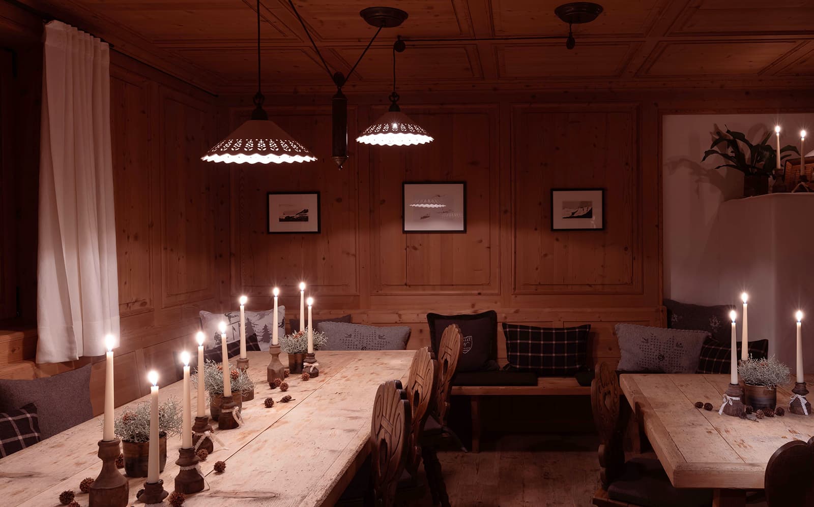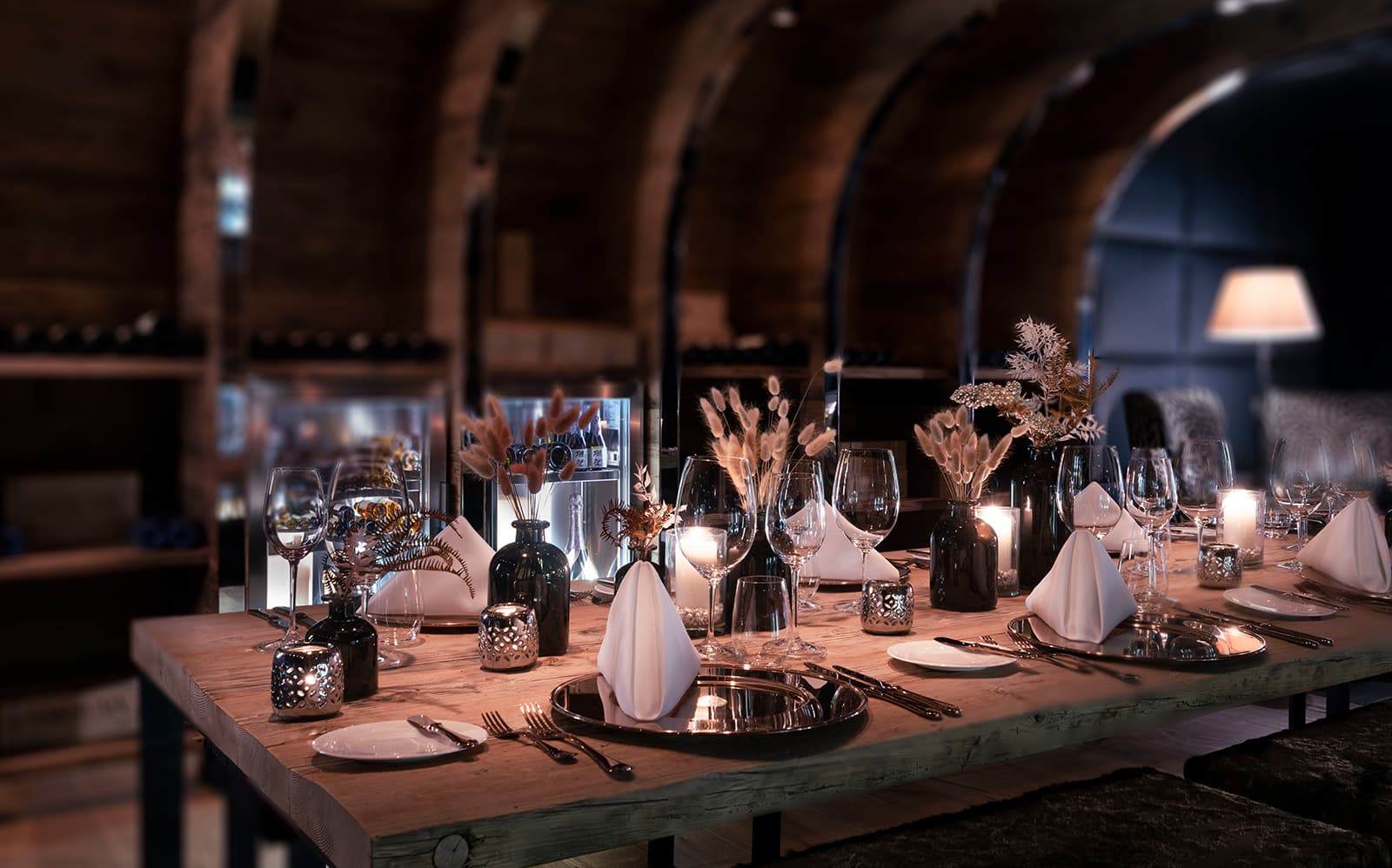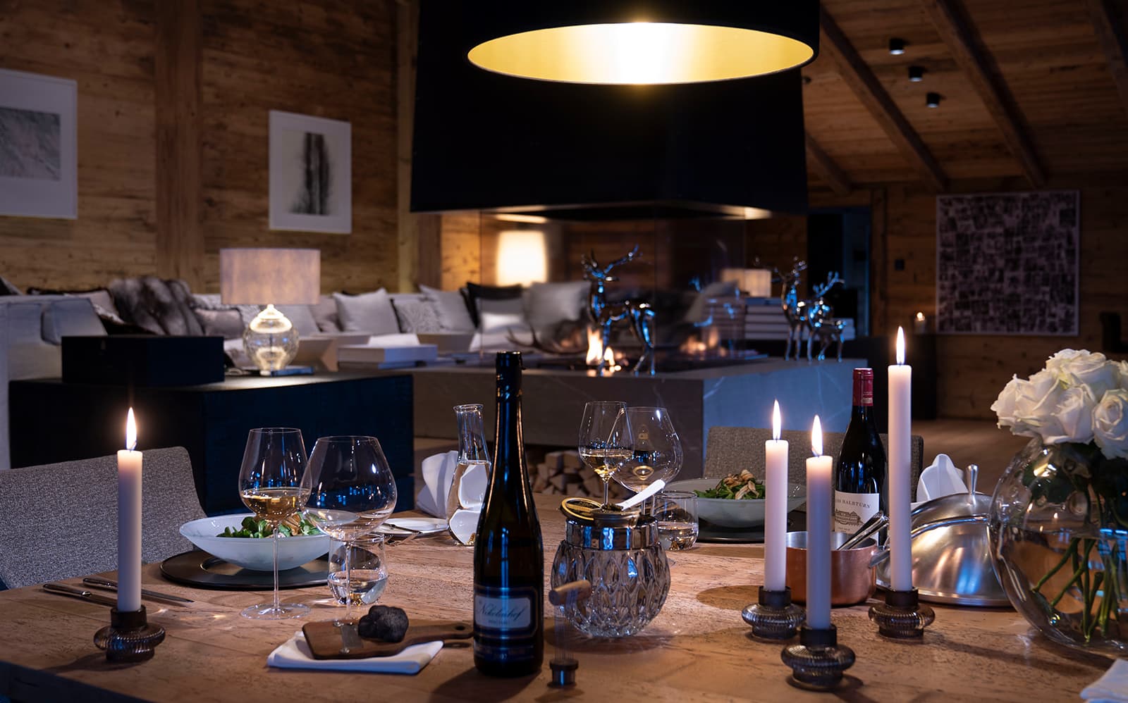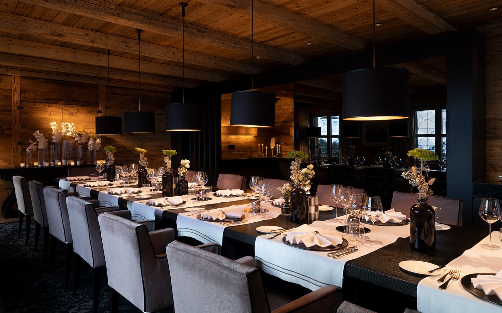 Struktur geben der kulinarischen Kultur des Chalet N die Mahlzeiten des Tages: Frühstück, Mittagstisch und Snack-Karte, Afternoon-Tea oder Après-Ski bis hin zum Diner-Event. Zudem ist die Küche stets geöffnet und das Team rund um die Uhr für Gäste da – auf Wunsch auch mit Room-Service. Das gemeinsame Essen jedoch hat im Chalet N einen besonderen Stellenwert: Vom Sharing-Konzept beim Mittagstisch bis zum Fine-Dining mit fünf Gängen am Abend.